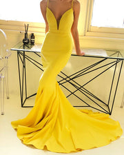 Mermaid Long V Neck Spaghetti-Straps Prom Dresses