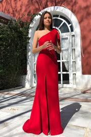 Mermaid Shoulder Satin High Slit Prom Gowns Prom Dress