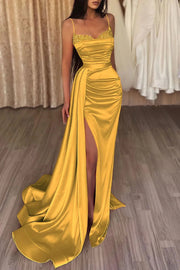 Mermaid Spaghetti Straps Long Prom Dress with Split Front