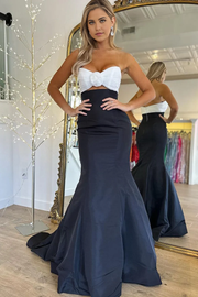 Mermaid Sweetheart Satin Long Prom Dress with Bow