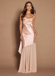 Rose Gold Spaghetti Straps Ruched Backless Prom Dresses