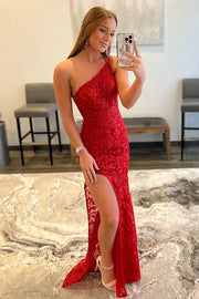 Sheath One Shoulder Lace Prom Dress - US 2 / UK 6 / EU 32 / Black