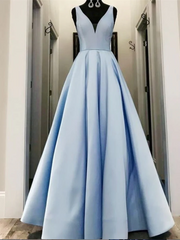 Simple V Neck Satin Long Prom Dress Formal Evening Dress