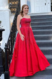 Sparkly Cute Ball Gown Red Satin Prom Dress with Beading