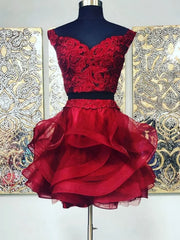 Two Pieces Lace Short Prom Dresses Short Homecoming Evening Dresses