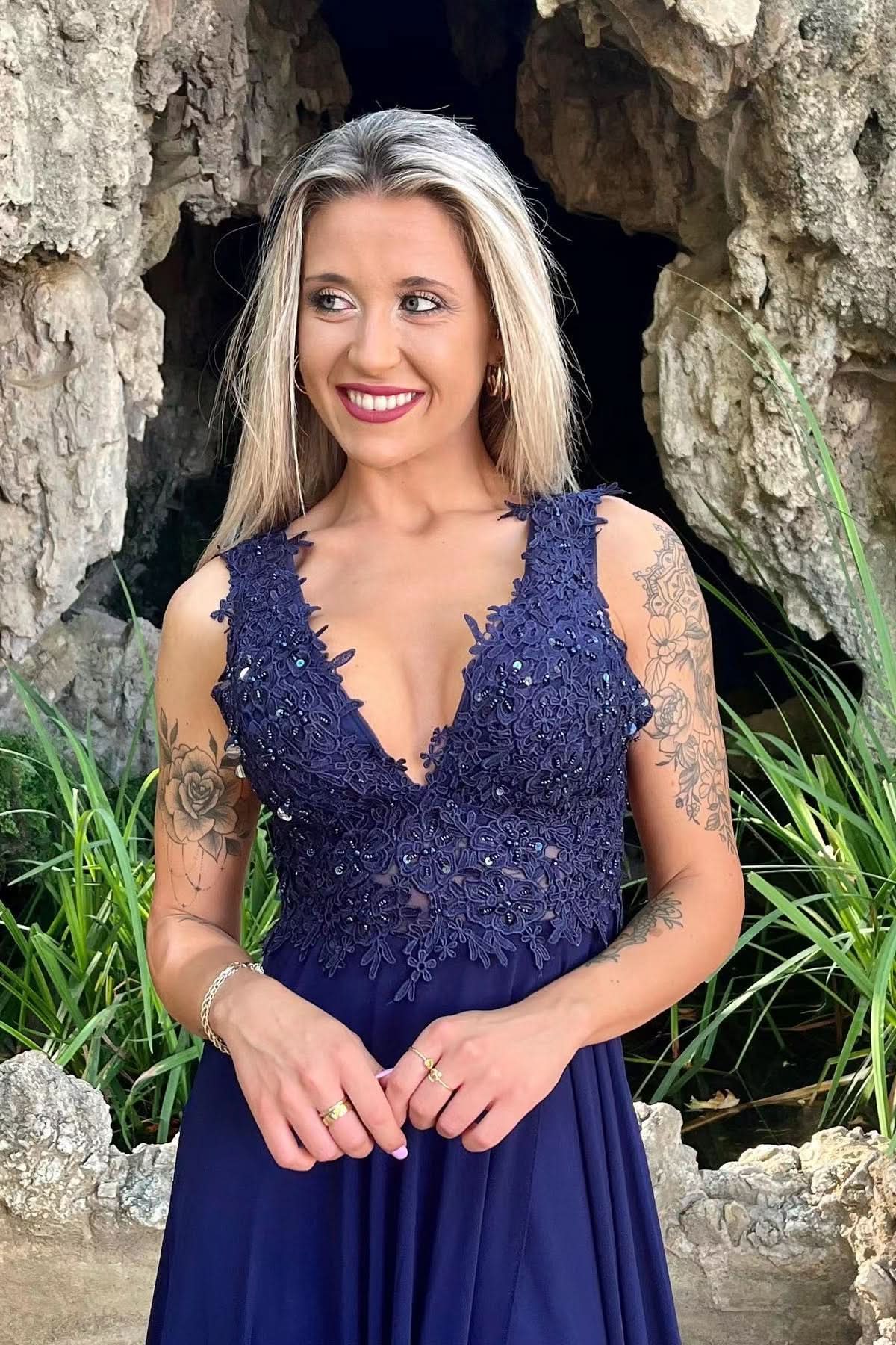 Vintage Red V-Neck Long Prom Dress with Split and Appliqueds