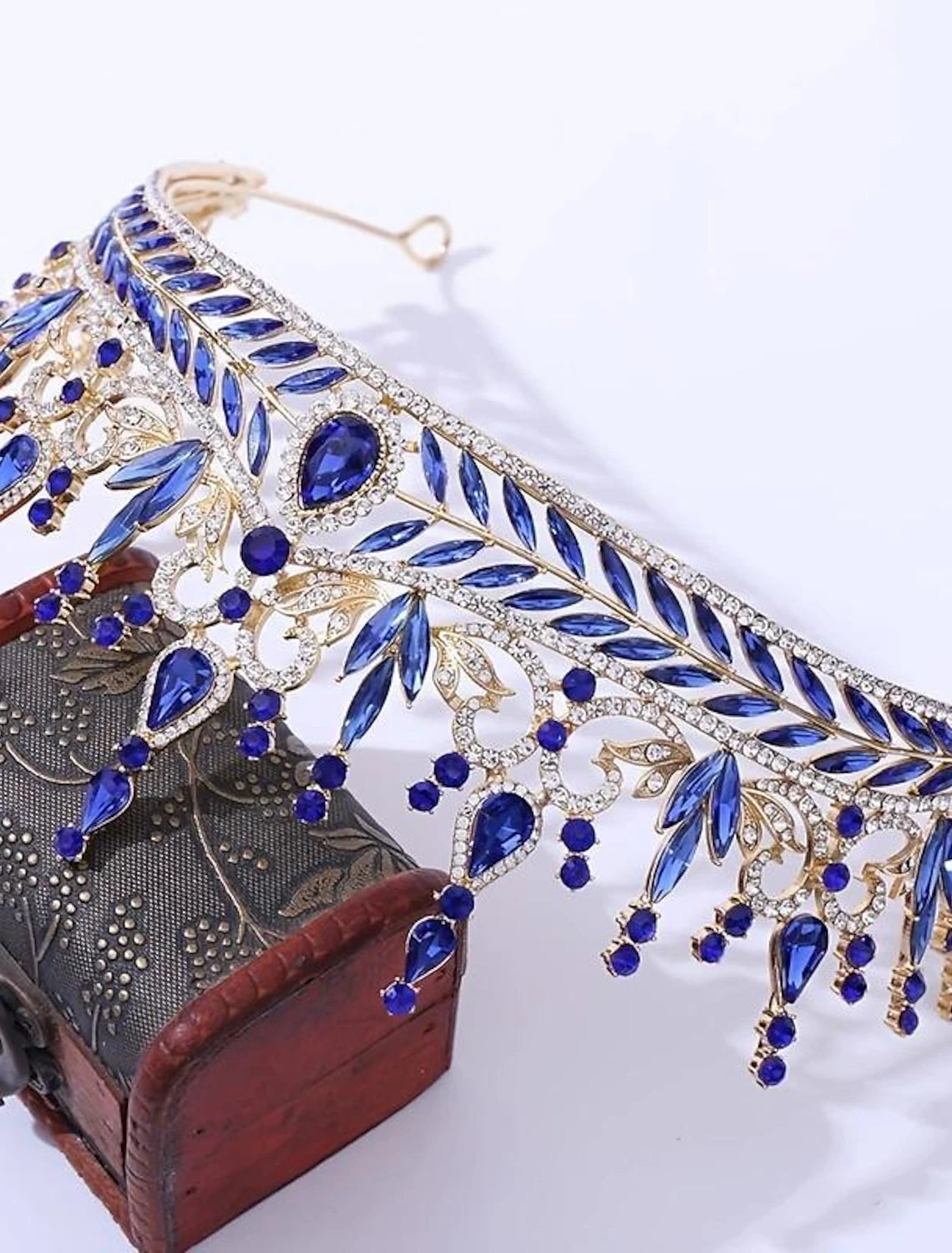 Luxury Bridal Tiaras Rhinestone Crown Bridal Diadem Wedding Hair Accessories For Women's Fashion Jewelry - KC Gold Blue Diamond