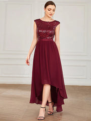 A-Linie Cocktailkleider Empire-Kleid Cocktailparty Asymmetrisch Ärmellos Rundhals Pailletten mit Drapierung Reine Farbe - US 2 / UK 6 / EU 32