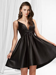 A-Linie Cocktailkleider Reformation Amante Kleid Homecoming Kurz / Mini Ärmellos V-Ausschnitt Satin mit Falten