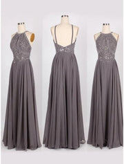 A-Linie/Princess-Linie Neckholder Ärmellos Sweep/Pinsel zug Perlen verziert Chiffon Kleider - US 2 / UK 6 / EU 32