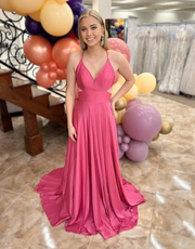 A-Linie Spaghettiträger Überkreuzter Rücken Fuchsia Lange Abendkleider Brautjungfernkleider Abendkleid Ballkleid