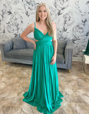 A-Linie Spaghettiträger Geraffte Grüne Lange Abendkleider Brautjungfernkleider Abendkleid Ballkleid