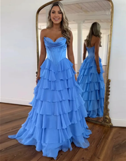 A-Linie Trägerloses Korsett Stufen Lange Abendkleider Abendkleid Ballkleid mit Schlitz