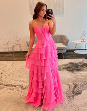 A-Linie Trägerlos Rüschen Schleife Chiffon Abendkleider Abendkleid Langes Ballkleid mit Schlitz