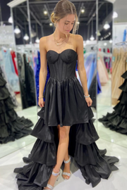 A-Linie Herzausschnitt Rüschen Stufen High-Low Abendkleider Brautjungfernkleider Abendkleid Ballkleid - US 2 / UK 6 / EU 32 / Schwarz