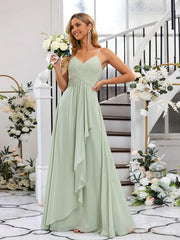 A-Linie V-Ausschnitt Spaghettiträger Abendkleider Abendkleid Ballkleid mit Schlitz