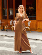 A-Linie V-Ausschnitt Samt Split Abendkleid formelles Kleid Ballkleider