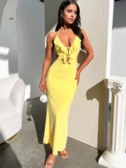Elegantes ärmelloses, sexy, rückenfreies, figurbetontes, hochgeschnittenes Abendkleid, Brautjungfernkleider, Abendkleid, Ballkleid - US 2 / UK 6 / EU 32 / Gelb