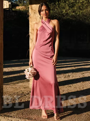 Meerjungfrau Neckholder Satin Bodenlang Abendkleider Brautjungfernkleider Abendkleid Ballkleid