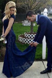 Meerjungfrau Spitze V-Ausschnitt Abendkleider Ballkleid Rückenfreies Abendkleid - US 2 / UK 6 / EU 32