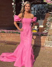 Meerjungfrau Off the Shoulder Rosa Lange Abendkleider Abendkleid Ballkleid