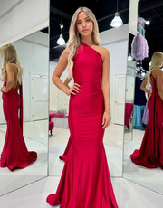 Meerjungfrau Eine Schulter Offener Rücken Langes Rotes Abendkleid Abendkleid Ballkleid mit Riemen