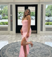 Meerjungfrau Spaghettiträger Rosa Perlen Abendkleider Brautjungfernkleider Abendkleid Ballkleid