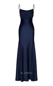 Meerjungfrau Spaghettiträger Satin Marineblau Abendkleider Brautjungfernkleider Abendkleid Ballkleid