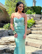 Meerjungfrau funkelndes trägerloses Korsett, lange Abendkleider, Abendkleid, Ballkleid mit Applikationen
