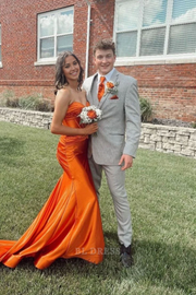 Meerjungfrau Trägerlos Schlüsselloch Satin Abendkleider Brautjungfernkleider Abendkleid Ballkleid