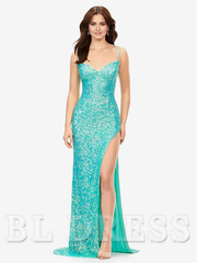Meerjungfrau Sweetheart Neck Pailletten Ärmellos Split Front Abendkleider Brautjungfernkleider Abendkleid Ballkleid - US 2 / UK 6 / EU 32 / Aqua