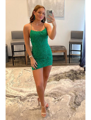 Meerjungfrau/Trompete Cocktailkleider Sexy Kleid Homecoming Kurz/Mini Ärmellos Spaghettiträger Tüll Rückenfrei mit Applikationen - US 2 / UK 6 / EU 32