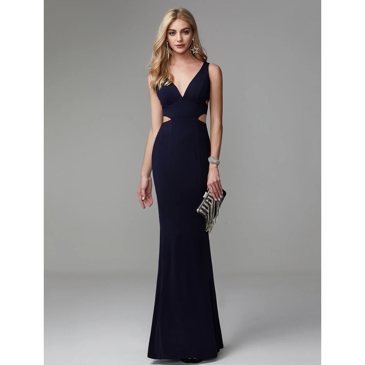 Meerjungfrau/Trompete, Ausschnitt, schöner Rücken, elegantes Ball-/Abendkleid, V-Ausschnitt, ärmellos, bodenlang, Spandex mit Falten