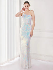 Meerjungfrau/Trompete Abendkleid Elegantes Kleid Hochzeitsgast Bodenlang Ärmellos Eine Schulter Pailletten V-Rücken mit Pailletten