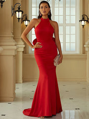 Meerjungfrau/Trompete Abendkleid Maxikleid Formelle Hofschleppe Ärmellos Neckholder Polyester mit Rüschen - US 2 / UK 6 / EU 32