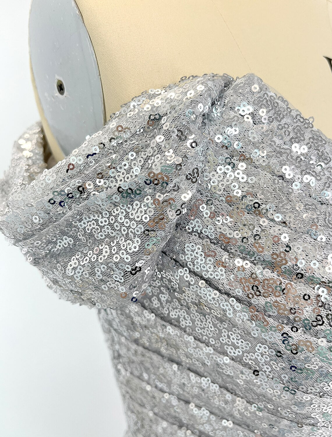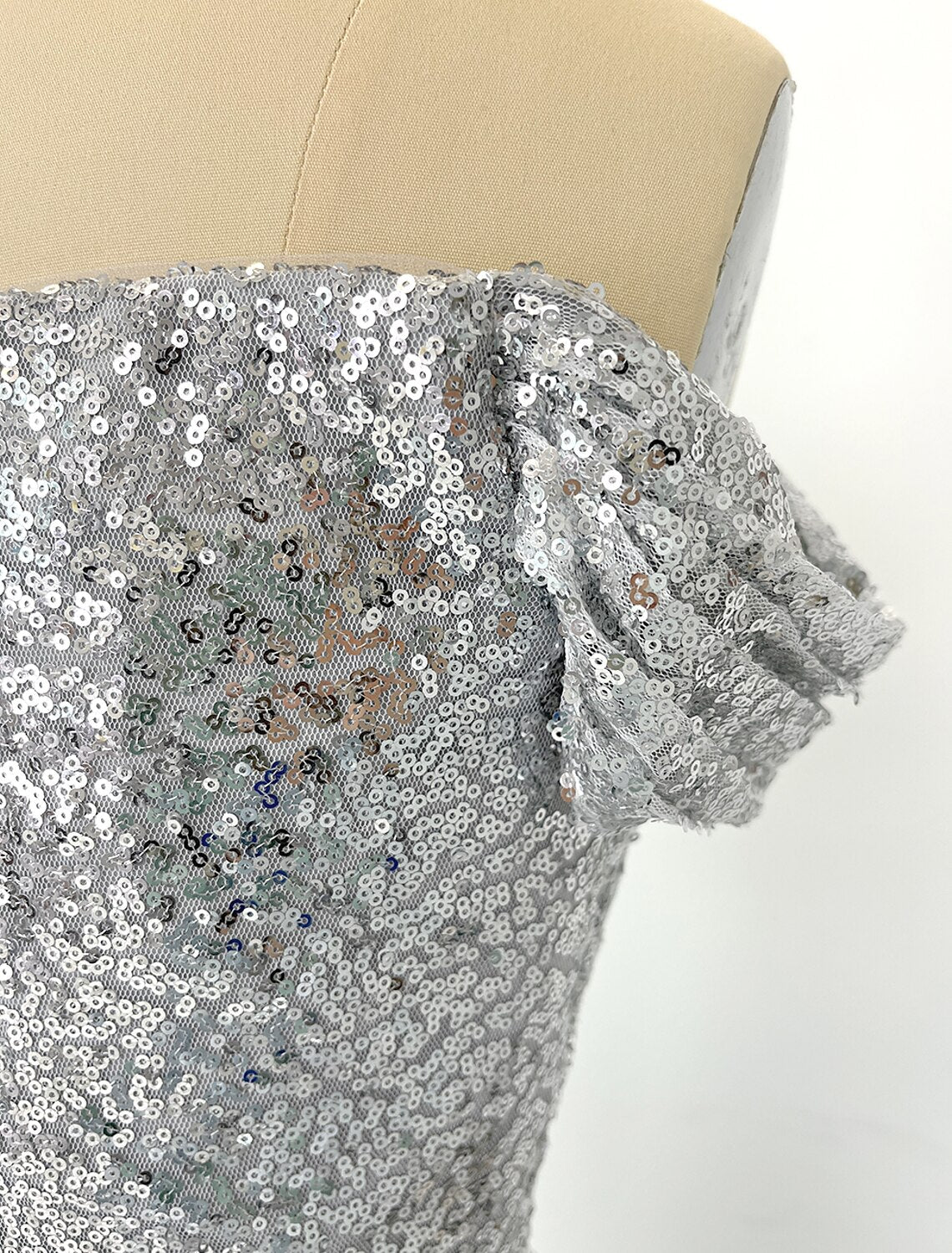 Meerjungfrau/Trompete Abendkleid Sparkle & Shine Kleid Cocktail Party Bodenlang Kurzarm Off Shoulder Pailletten mit Rüschen - US 2 / UK 6 / EU 32