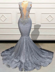 Meerjungfrau/Trompete Abendkleid Sparkle & Shine Kleid Formelle Hofschleppe Ärmellos Rundhals Afroamerikaner Pailletten mit Perlenapplikationen
