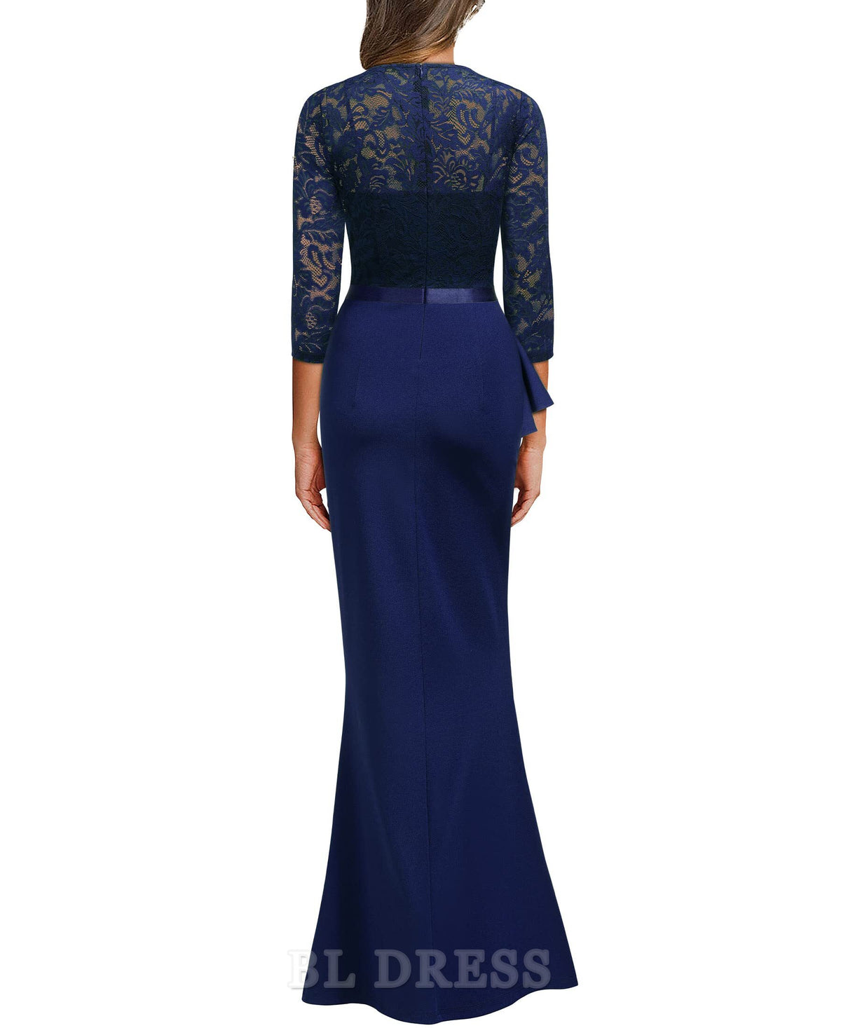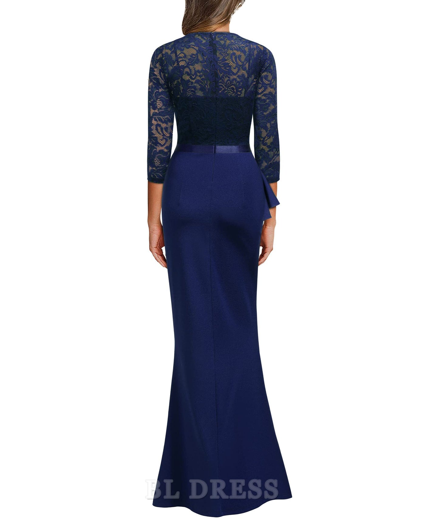 Meerjungfrau V-Ausschnitt Halbarm Spitze Rüschen Abendkleider Abendkleid Brautjungfernkleider