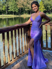 Meerjungfrau V-Ausschnitt Schnürung am Rücken Lila Träger Abendkleider Brautjungfernkleider Abendkleid Ballkleid