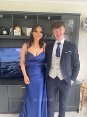 Meerjungfrau V-Ausschnitt Spaghettiträger Satin Lange Abendkleider Brautjungfernkleider Abendkleid Ballkleid