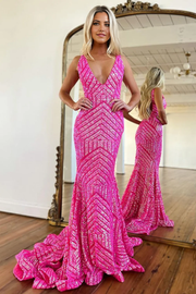 Meerjungfrau V-Ausschnitt Glitzernde Pailletten Offener Rücken Langes Abendkleid Formelle Kleider Ballkleid