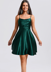 Modern A-line Cowl Short Stretch Satin Homecoming Dress
