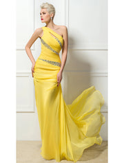 Etui-Linie/Spalte Sexy Verlobungs-Abendkleid mit einer Schulter, rückenfrei, ärmellos, Sweep/Pinsel-Schleppe, 30D-Chiffon mit gerüschtem Kristall und Pailletten - US 2 / UK 6 / EU 32