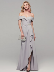 Etui-/Säulenkleider für besondere Anlässe, elegantes und luxuriöses Kleid für Hochzeitsgäste, bodenlang, kurze Ärmel, schulterfrei, Spandex mit Strass, geteilte Vorderseite - US 2 / UK 6 / EU 32