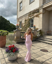 Etuikleid Sexy Spaghettiträger Ärmellos Rosa Lange Abendkleider Brautjungfernkleider Abendkleid Ballkleid