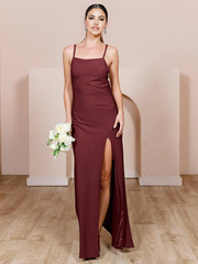 Etuikleid Spaghettiträger Rückenfrei Bodenlang Abendkleider Brautjungfernkleider Abendkleid Ballkleid