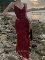 Etuikleid Spaghettiträger Burgunderrot Abendkleider Brautjungfernkleider Abendkleid Ballkleid