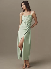 Etuikleid Spaghettiträger Wadenlang Satin Abendkleider Brautjungfernkleider Abendkleid Ballkleid