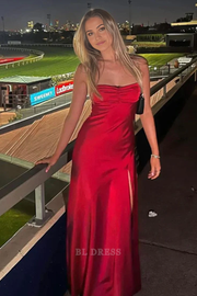 Mantel Sweetheart Red Satin Sexy Lange Abendkleider Brautjungfernkleider Abendkleid Ballkleid mit Split