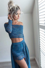 Zweiteiliges Abendkleid mit langen Ärmeln und Spitze, formelle Kleider, Ballkleid mit Schlitz